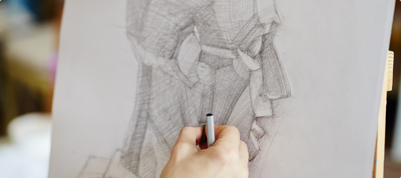 다양한 재료와 도구를 통해 시각적 표현의 기초를 익히고, 관찰-드로잉-조형원리의 과정을 거치며 ‘보는’ 것에서 ‘표현하는’ 것으로 사고를 전환하는 데 중점을 둡니다.