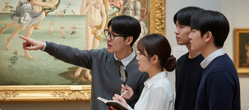 곰브리치 서양미술사를 교재로 하여 고대 그리스·로마에서 현대에 이르는 서양미술의 역사적 흐름을 개관하고, 미술이 사회와 문화와 어떻게 상호 작용해 왔는지를 구조적으로 이해하는 과목입니다.